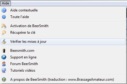 BeerSmith vérifie périodiquement si une nouvelle version existe. Dans le menu d'aide et le ruban, il ya aussi une commande pour vérifier manuellement les mises à jour.